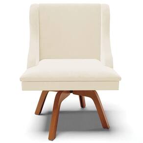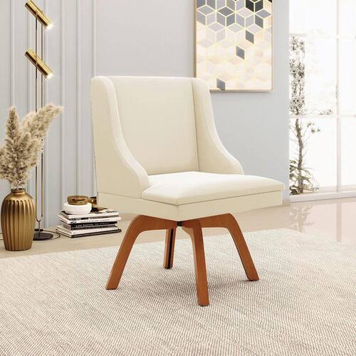 Cadeira Decorativa Sala De Jantar Base Giratória De Madeira Firenze Veludo Bege/natural