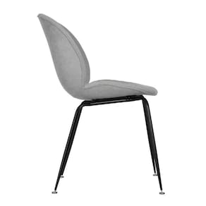 A Cadeira Dinamarca possui seu assento estofado e sua base minimalista em aço carbono. Ideal para qualquer ambiente que busca modernidade e um toque retrô em sua decoração.