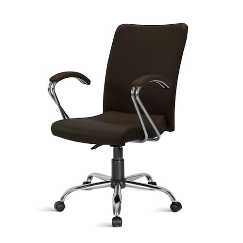 * Braços fixos cromados com apoio revestido em courvim 100% pvc.