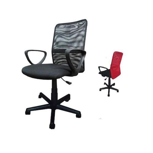 Encosto revestido em tela mesh na cor Preto, acompanha uma capa na cor Vermelha;