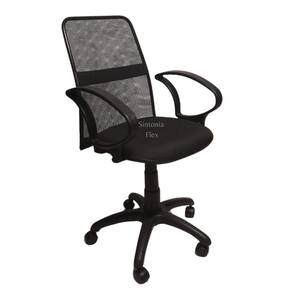 Cadeira Diretor - braço fixo - estrutura do encosto em aço, revestida em tecido tela com faixa e detalhe em corano - assento em madeira reflorestada - espuma injetada, revestida em tecido j.serrano anti-chamas e bordas em pvc flexivel, flange universal, base estrela em nylon com rodizio - regulagem de altura a gás. Marca: Sintonia Flex