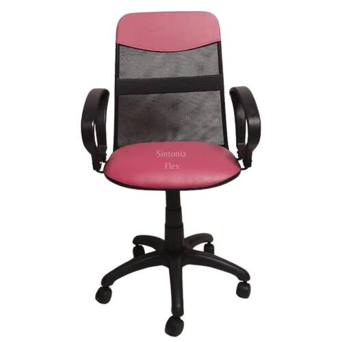 Cadeira Diretor - braço fixo - estrutura do encosto em aço, revestida em tecido tela com faixa e detalhe em corano - assento em madeira reflorestada - espuma injetada, revestida em couro sintético e bordas em pvc flexivel, mecanismo relax , que permite o inclinamento do encosto, base estrela em nylon com rodizio - regulagem de altura a gás. Marca: Sintonia Flex