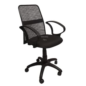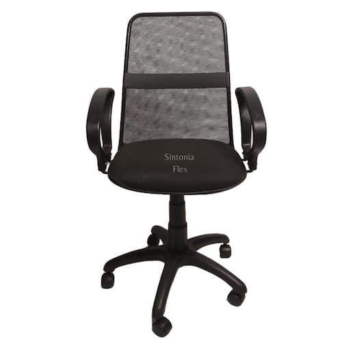 Cadeira diretor tela giratória com faixa - mecanismo relax - braço fixo tecido preto Cadeira Diretor - braço fixo - estrutura do encosto em aço, revestida em tecido tela com faixa e detalhe em corano - assento em madeira reflorestada - espuma injetada, revestida em tecido j.Serrano anti-chamas e bordas em pvc flexivel, mecanismo relax , que permite o inclinamento do encosto, base estrela em nylon com rodizio - regulagem de altura a gás. Marca: Sintonia Flex
