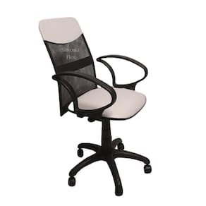 Cadeira diretor tela giratória com faixa - mecanismo relax - braço fixo corano branco Cadeira Diretor - braço fixo - estrutura do encosto em aço, revestida em tecido tela com faixa e detalhe em corano - assento em madeira reflorestada - espuma injetada, revestida em couro sintético e bordas em pvc flexivel, mecanismo relax , que permite o inclinamento do encosto, base estrela em nylon com rodizio - regulagem de altura a gás. Marca: Sintonia Flex