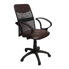 Cadeira diretor tela giratória com faixa - mecanismo relax - braço fixo corano marrom Cadeira Diretor - braço fixo - estrutura do encosto em aço, revestida em tecido tela com faixa e detalhe em corano - assento em madeira reflorestada - espuma injetada, revestida em couro sintético e bordas em pvc flexivel, mecanismo relax , que permite o inclinamento do encosto, base estrela em nylon com rodizio - regulagem de altura a gás. Marca: Sintonia Flex