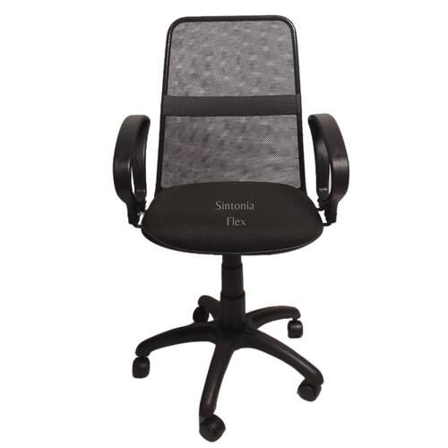 Cadeira diretor tela giratória com faixa - mecanismo relax - braço fixo tecido preto Cadeira Diretor - braço fixo - estrutura do encosto em aço, revestida em tecido tela com faixa e detalhe em corano - assento em madeira reflorestada - espuma injetada, revestida em tecido j.Serrano anti-chamas e bordas em pvc flexivel, mecanismo relax , que permite o inclinamento do encosto, base estrela em nylon com rodizio - regulagem de altura a gás. Marca: Sintonia Flex