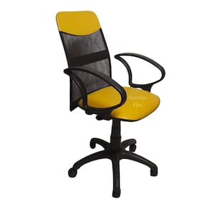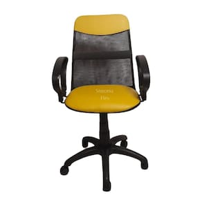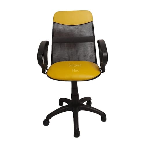 Cadeira diretor tela giratória com faixa - mecanismo relax - braço fixo corano amarelo Cadeira Diretor - braço fixo - estrutura do encosto em aço, revestida em tecido tela com faixa e detalhe em corano - assento em madeira reflorestada - espuma injetada, revestida em couro sintético e bordas em pvc flexivel, mecanismo relax , que permite o inclinamento do encosto, base estrela em nylon com rodizio - regulagem de altura a gás. Marca: Sintonia Flex