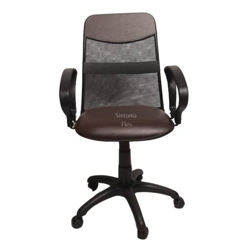 Cadeira diretor tela giratória com faixa - mecanismo relax - braço fixo corano marrom Cadeira Diretor - braço fixo - estrutura do encosto em aço, revestida em tecido tela com faixa e detalhe em corano - assento em madeira reflorestada - espuma injetada, revestida em couro sintético e bordas em pvc flexivel, mecanismo relax , que permite o inclinamento do encosto, base estrela em nylon com rodizio - regulagem de altura a gás. Marca: Sintonia Flex