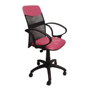 Cadeira diretor tela giratória com faixa - mecanismo relax - braço fixo corano pink Cadeira Diretor - braço fixo - estrutura do encosto em aço, revestida em tecido tela com faixa e detalhe em corano - assento em madeira reflorestada - espuma injetada, revestida em couro sintético e bordas em pvc flexivel, mecanismo relax , que permite o inclinamento do encosto, base estrela em nylon com rodizio - regulagem de altura a gás. Marca: Sintonia Flex