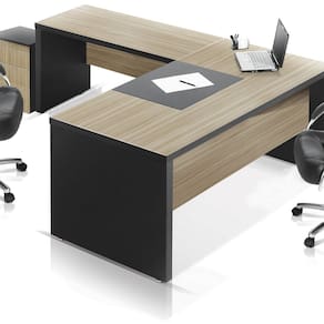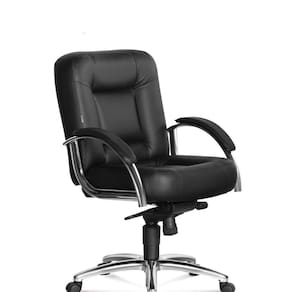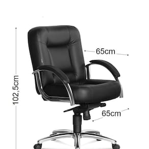 Cadeira giratória Venire de espaldar médio com assento e encosto estruturado em madeira laminada e estofado com espuma laminada com densidade D28. Revestimento em sintético preto.