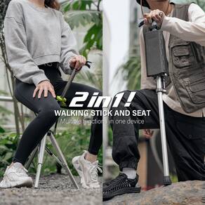 STEP2GOLD Cadeira Ta-Da, mastro de caminhada portátil, bengala dobrável com assento, bengala de caminhada com cadeira, cadeira dobrável, alumínio leve, fácil de transportar e armazenar, antiderrapante - Uso versátil: a cadeira Ta-Da é um produto versátil que oferece aos amantes do ar livre um assento para descansar e uma vara de caminhada para suporte. Este design, que instantaneamente converte um bastão de caminhada em uma cadeira com um piscar de olhos, oferece descanso para pernas e joelhos cansados a qualquer momento. - Alça ergonômica: como uma bengala de caminhada, a alça ergonômica com ângulos de inclinação especiais e textura de grão torna fácil de segurar, reduzindo assim o esforço do usuário para carregar. Como uma cadeira, com o maior assento entre todos os produtos similares no mercado, traz melhor conforto e experiência ao sentar. - Durabilidade leve: o alumínio de nível aeronáutico pesa menos de 900 g. Fácil de transportar e armazenar. Suporta até 110 kg (242 lb) e está disponível em três alturas: 81,8 cm para usuários de 1,70 m a 1,60 m, 84,8 cm para usuários de 1,70 m a 1,70 m e 88 cm para usuários de 1,70 m a 1,80 m cm. Lembrete: confirme se a altura, o tamanho e o peso do assento atendem às suas necessidades. - Estrutura reforçada: estabilidade dupla e estrutura reforçada, com padrões europeus EN 581, EN 1985 e EN 12182 testados pela SGS. Também está em conformidade com o padrão nacional CNS 15192 Taiwan. Adequado para usar como uma cadeira de acampamento com a função de uma bengala ao mesmo tempo. - PÉS DE BORRACHA ANTIDESLIGANTE: Pés de borracha gigantes antiderrapantes com padrão espiral trazem maior estabilidade, bem como melhor capacidade de drenagem durante o uso. Também temos um pacote de recarga adicional disponível para compra. Pesquise "Kit de substituição de pés de borracha para cadeira Ta-Da Série 2.5 cm para permanecer ativo em todos os momentos. - ANTES DE COMPRAR: Por questões de segurança, sente-se no centro do assento e enfrente a alça com as mãos entre as pernas. Se precisar de ajuda, . A STEP2GOLD se dedica a fornecer o melhor serviço.