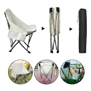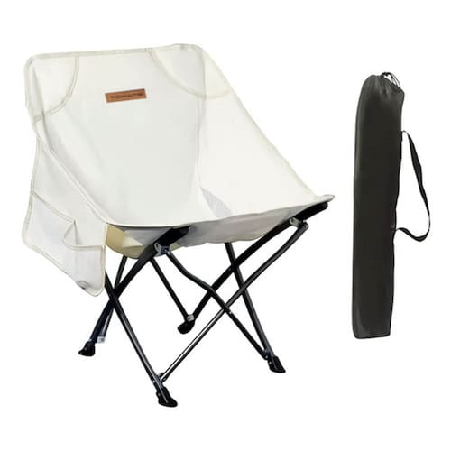 1x Cadeira Dobrável de Camping Pesca [bege com Bolso]