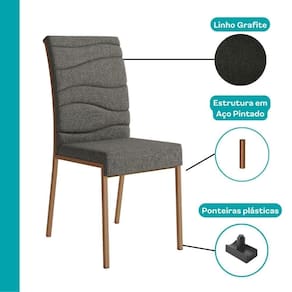 Estado de Origem: RS | Quantidade de cadeiras: 2 | Cor Predominante: Grafite com Rosê | Cor: Grafite com Rosê | Peso do produto (kg): 14,30 | Altura do produto (cm): 97 | Largura do produto (cm): 43 | Profundidade do produto (cm): 60 | Descrição do Tamanho: L 43 x A 97 x P 60 | Peso do Produto com Embalagem (kg): 15,20 | Altura do Produto com Embalagem (cm): 59 | Largura do Produto com Embalagem (cm): 105,50 | Profundidade do Produto com Embalagem (cm): 12,30 | Material das cadeiras: Linho com Aço | Fabricante: Móveis Carraro | Marca: Móveis Carraro | Requer montagem: Sim | Produto: Kit 2 Cadeiras | Nome Simples no Fornecedor: Cadeira Duna Carraro Grafite c/ Rosê | Instruções/Cuidados: Limpeza com pano seco. | Conteúdo da Embalagem: 1 Cadeira Duna Carraro Grafite c/ Rosê | PrazoExp: 2 | de Itens: 2 | Assembly Required: Sim | Included Components: Não aplicável | External Certification: Não Aplicável | Frágil: Sim | Bullet Point 0: Design moderno e sofisticado | Bullet Point 1: Conforto no dia a dia | Bullet Point 2: Estrutura resistente | Model Number: 175421742 | number_of_boxes ( de caixas): 1 | part_number ( da peça): Não Aplicável | batteries_required: Não | Peso da Cadeira: 7.15 | Cômodo Indicado: Sala de Jantar