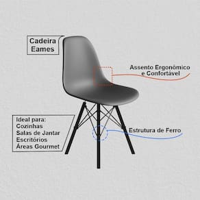 Ferro e PolipropilenoA Cadeira Eames combina design moderno, conforto e resistência, sendo uma excelente escolha para compor salas de jantar, escritórios, cozinhas ou ambientes comerciais. Inspirada no clássico estilo Eames, ela traz um visual atemporal que valoriza qualquer espaço com elegância e personalidade.