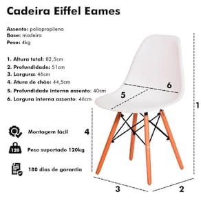 Versátil, a cadeira Eames Eiffel é ideal para diversos ambientes, como mesas de jantar, escritórios ou áreas de estar. Seu design não só é sofisticado, mas também acrescenta um toque de charme e estilo, tornando-a uma escolha perfeita para receber amigos e familiares com um toque de elegância.