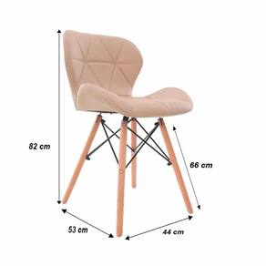 Sua combinação entre formas e proporções trazem ergonomia e conforto, além de alta qualidade ao unir a resistência do assento em polipropileno e poliuretano, e seus pés em estilo palito de madeira. Por se tratar de uma cadeira moderna, a montagem, conservação e limpeza são muito fáceis e práticas.