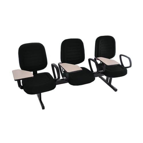 Cadeira Universitária em Longarina com 03 lugares com prancheta escamoteável Preto Linha Blenda Tonalidade da Cor: Preto - Marca: Design Office Móveis - Modelo: Cadeira Universitária em Longarina com 03 lugares com braços fixos e prancheta escamoteável
