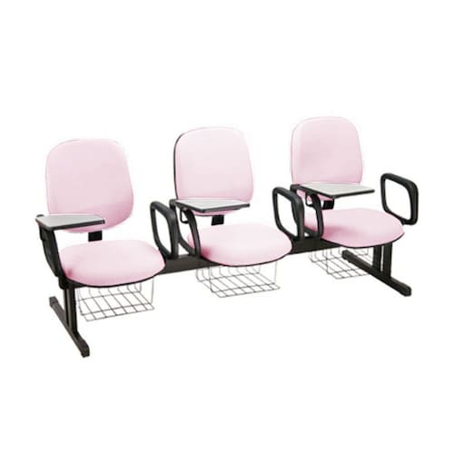 Cadeira Diretor Universitária com prancheta escamoteável em longarina para 03 lugares  para Escolas Linha Uno  - Tonalidade da Cor do Assento e Encosto:  Rosa Claro - Marca: Design Office Móveis - Revestimento do Assento e Encosto: Material Sintético     A Cadeira Diretor Universitária em longarina com prancheta  escamoteável para Escolas Linha Uno  da marca Design Office Móveis, foi projetada para proporcionar conforto e bem estar, tornando o dia-a-dia mais agradável. Utilizado para compor diversos tipos de ambientes a Linha Uno da marca Design Office Móveis são modelos de cadeiras para escolas, faculdades, empresas de treinamento e ambientes corporativos, com medidas avantajadas, ergonômicas e confortáveis, que se diferenciam de modelos de cadeiras para escolas convencionais existentes no mercado, de fabricação nacional com qualidade e garantia de 1 ano, direcionado para: escolas particulares, empresas de treinamento,cursinhos, universidades, escolas, ambientes corporativos e empresas em geral.   A Longarina com 03 Cadeiras é entregue totalmente montada, sem a necessidade de qualquer montagem adicional, é só tirar da caixa e sentar-se, você não terá o trabalho de ler díficeis manuais de montagem e nem de perder muitas horas em meio a diversos parafusos e peças, nós fazemos isso para você.    Dimensões: Largura do assento: 49,0 cm  Profundidade do Assento: 48,0 cm  Largura do Encosto: 46,0 cm  Altura do Encosto: 48,0cm  Altura Total: 93,0 cm Profundidade Total: 52,0 cm Largura Total: 180,0cm Peso da cadeira: 15,00kg  Altura do chão até o assento: 46,0 cm Estrutura da Cadeira: Fixa Modelo em Longarina com 03 lugares com Braços Fixos, prancheta escamoteável e grade porta livros.   Cor da Estrutura: Preta com lâmina de aço para sustentação do encosto.    Marca: Design Office Móveis  Revestimento do Assento e Encosto: Material Sintético   Garantia: 12 Meses/1 ano cobrindo defeitos de fabricação.  **Medidas aproximadas, podendo haver variações**   Observações Importantes: As medidas descritas nesse anúncio são aproximadas podendo sofrer pequenas variações sendo maiores ou menores.   As cores das fotos do produto são meramente ilustrativas, a tonalidade da cor pode sofrer alterações sendo mais clara ou mais escura.   Ao receber a mercadoria efetuar a conferência. Confira as dimensões do produto e certifique-se de que passará normalmente por elevadores, portas, escadas ou corredores de sua residência.