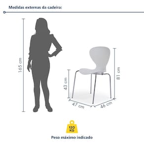 Qual a vantagem da cadeira com estrutura tubular? A base tubular oferece durabilidade e um visual moderno. Acabamento: Pintura Acabamento da Estrutura: Pintura Altura do assento até o chão: 43,5 cm Altura Máxima dos Pés: 43.0000 Ambiente: Cozinha Ambiente Principal: Sala de Jantar codigo_ean: 7898428338057 Cor: Cromado/Branco Cor: Cromado/Branco Cor: Branco Cor do Produto: Cromado/Branco Dobrável: Não Escala de Brilho: Fosco Estrutura do Assento: Polipropileno Estrutura do Encosto: Polipropileno Giratória: Não Informações Complementares: Modelo testado conforme normas abaixo para nível 3 de desempenho - doméstico severo: iso 7173/89 - furniture - chairs and stools - determination of strength and durability (pri 632/433 - 3a. Ed. Revisão 1) iso 7174/88 - parte 1 - furniture - chairs - dete Itens Inclusos: 1 Cadeira Linha: Flash Linha ou Coleção: Flash Manual de Montagem e Instalação: https://cdn2.madeiramadeira.com.br/atributo/prima-design/1102470-160a.pdf Manutenção: A estrutura deve ser limpa utilizando pano seco de algodão ou flanela. Se necessário, utilize pano umedecido apenas com água, secando o móvel em seguida. Não utilize solvente, álcool, acetona, lustra móveis, produtos abrasivos e outros produtos que contenham soda e ou ácidos para limpar e tirar manchas dos móveis. Não expor os móveis à luz solar e ambientes com umidade relativa elevada. Manter a estrutura metálica limpa, utilizando pano seco ou cera a base de silicone. Marca: Prima Design Material da Base: Aço Material Principal: Aço Necessita Montagem: Não Origem do Produto: Nacional Peso: 3,4 kg Possui Apoio para Braços: Não Possui Rodízio: Não Recomendações de Uso, Manutenção e Limpeza: A estrutura deve ser limpa utilizando pano seco de algodão ou flanela. Se necessário, utilize panoumedecido apenas com água, secando o móvel em seguida.Não utilize solvente, álcool, acetona, lustra móveis, produtos abrasivos e outros produtos que contenhamsoda e ou ácidos para limpar e tirar manchas dos móveis.Não expor os móveis à luz solar e ambientes com umidade relativa elevada.Manter a estrutura metálica limpa, utilizando pano seco ou cera a base de silicone. Tipo de Assento: Fixo Tipo de Encosto: Fixo Marca: Não Informado