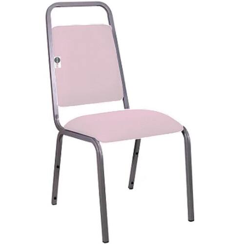 Cadeira Empilhável para Hotelaria Linha Hotel Fremont - Tonalidade da Cor do Assento e Encosto: Rosa Claro - Marca: Design Office Móveis - Revestimento do Assento e Encosto: Material Sintético Cor da Estrutura: Cinza