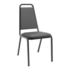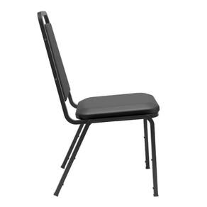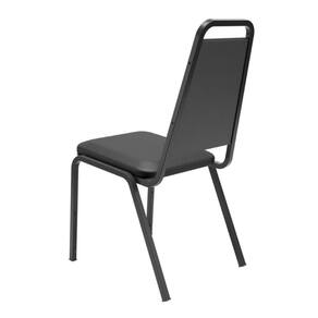Características Técnicas: Feita a partir de couro ecológico preto Configuração empilhável Assento e encosto com tecido estofado Estrutura com pintura preta Suporta até 120 Kg