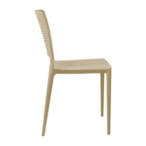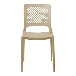 Seu design clean na cor areia traz elegância e sofisticação aos ambientes, harmonizando facilmente com diversos estilos de decoração do clássico ao contemporâneo. É uma cadeira versátil e prática, ideal para salas de jantar, varandas, áreas gourmet, jardins, restaurantes e eventos. O modelo é empilhável, facilitando a organização e otimizando o espaço, perfeita para uso residencial e comercial.