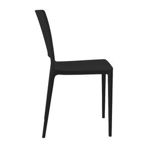 Seu design clean na cor preta combina facilmente com diferentes estilos de decoração, do clássico ao contemporâneo, tornando-a versátil para salas de jantar, varandas, áreas gourmet, jardins, restaurantes e eventos. O modelo é empilhável, facilitando a organização e otimizando o espaço, sendo perfeito tanto para uso residencial quanto comercial.