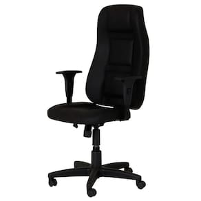 - Cadeira Giratória - Base e Braços em Polipropileno - Assento e Encosto em espuma D45 com revestimento sintético em PVC - Assento e Encosto com função Relax - Possui 5 rodízios em Nylon - Tonalidade do Produto: Preto