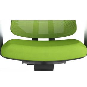 Estrutura traseira de nylon com estofamento de malha especial de cor verde, com suporte lombar de ajuste dinâmico