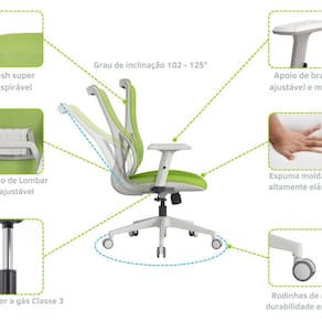 Cadeira Ergonômica office em Mesh com encosto médio em moldura cinza; Parte traseira de nylon com estofamento de malha de excelente qualidade com suporte lombar ajustável; Assento estofado em tecido elástico de ótima qualidade com espuma moldada; Apoio de braço ajustável com apoio em PU, moldura cinza e apoio em PU cinza; Mecanismo de alavanca com inclinação e travamento na função de 3 posições; Elevação á gás preto 5.100/50mm, classe 3; Base de nylon de cor cinza de 340 mm; Rodinhas em Nylon com Revestimento em PU Produto Montado: Sim Ambiente Principal: Escritório codigo_ean: 7909903943502 Complexidade da Montagem: Baixa: pode ser montado por uma pessoa sozinha Cor: Cinza Cor do Produto: Cinza Empilhável: Não Enchimento do Assento: Espuma Encosto Reclinável: Sim Itens Inclusos: 1 Cadeira (Desmontada), Manual para Montagem Ferramentas e Parafusos Manual de Montagem e Instalação: https://product-hub-prd.madeiramadeira.com.br/953718/documents/a0497d1c-bc3c-4cc6-a5a2-f414df9c745536401727289699953718113512.pdf Necessita Montagem: Sim Origem do Produto: Importado Peso: 15 kg Possui LED: Não Possui Rodízio: Sim Recomendações de Uso, Manutenção e Limpeza: Não Utilizar Produtos Químicos ou Abrasivos Evite Incidência Direta de Luz Solar Evitar Batidas e Contato com Objetos Cortantes Limpeza com Flanela Úmida ou Esponja não Abrasiva Não Deve Ficar em Local Exposto a Sol e Chuva Sistema de Montagem: Parafusos Suporta Até (kg): 230 kg undefined: 953720 Marca: Movescan