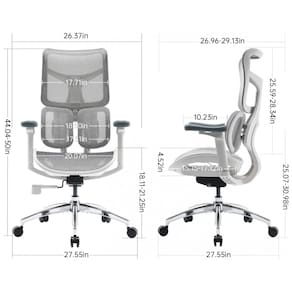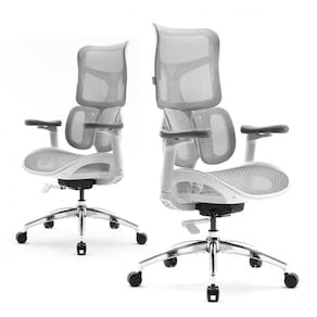 A cadeira ergonômica de escritório SIHOO Doro S100 foi projetada com apoio lombar dinâmico duplo, utilizando um mecanismo adaptativo com quatro molas que realiza ajustes automáticos em múltiplas direções, para se adaptar a diferentes biotipos e posturas de uso. O encosto em malha de alta resiliência oferece suporte independente, com a parte superior ajustável em 5 níveis de altura, atendendo usuários com estaturas variadas e proporcionando apoio completo para região de ombros e pescoço.