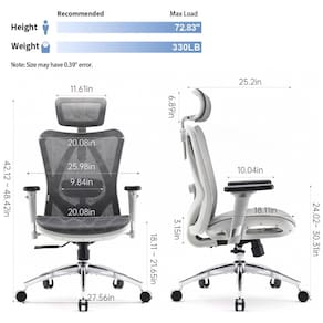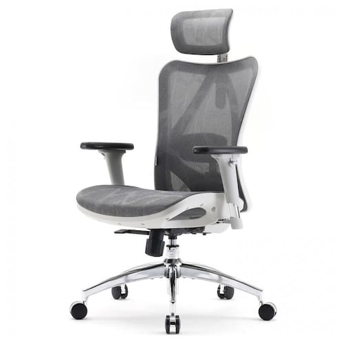 A cadeira ergonômica de escritório SIHOO M57 apresenta encosto alto dividido em malha respirável que acompanha a curvatura da coluna, com apoio lombar ajustável em altura e profundidade para configurações precisas em diferentes posturas de trabalho. O encosto de cabeça regulável permite inclinação e elevação, sincronizando com o mecanismo de reclinação que varia de 90° a 126° em 3 posições com trava multi-lock e ajuste de tensão.
