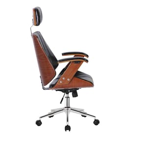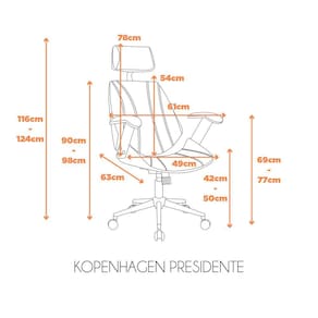 A cadeira Kopenhagen Presidente é toda revestida em couro ecológico e possui sua estrutura em madeira, o que a torna ótima por conta de seu design para salas de reuniões e presidência. Ela também possui o mecanismo relax, o que irá manter quem estiver sentado nela mais confortável, o que unido a seu encosto de cabeça é ainda mais confortável, além de ser possível ajustar a altura do assento! Acabamento da Estrutura: Não se Aplica Altura do assento até o chão: 50 cm Ambiente Principal: Escritório Braço com Ajuste de Altura: Não Complexidade da Montagem: Média: pode ser montado por mais de uma pessoa e/ou necessite de maior conhecimento para montagem Cor: Preto/Amadeirado Cor da Base: Cromado Cor do Produto: Preto/Amadeirado Dobrável: Não Empilhável: Não Encosto Reclinável: Sim Escala de Brilho: Semi-Brilho Estrutura do Assento: Madeira Estrutura do Encosto: Polipropileno Giratória: Sim Itens Inclusos: 1 Cadeira, Kit Ferragens e Manual de Montagem Linha ou Coleção: Kopenhagen Manual de Montagem e Instalação: https://cdn2.madeiramadeira.com.br/atributo/fratini/1107814-cadeira-kopenhagem-presidente-ref-275.pdf Material da Base: Aço Necessita Montagem: Sim Origem do Produto: Importado Peso: 16,5 kg Possui Apoio para Braços: Sim Possui LED: Não Possui Rodízio: Sim Recomendações de Uso, Manutenção e Limpeza: Pano úmido Revestimento do Assento: Couro Ecológico Revestimento do Encosto: Couro Ecológico Sistema de Montagem: Encosto, Assento, Par de Braços, Flange (Mecanismo)Pistão ,Anel (Acabamento entre pistão e estrela)Rodizio (Estrela + Rodinhas), Kit de Parafusos, Chave de Parafusos Suporta Até (kg): 120 kg Tipo de Assento: Regulável Tipo de Encosto: Regulável Tipo de Madeira Maciça: Pinus