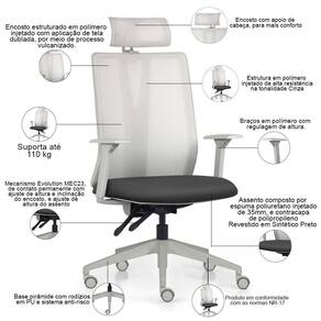 Equipada com um mecanismo Evolution, um sistema de contato permanente, essa cadeira giratória abraça as suas necessidades, permitindo ajustes precisos na altura do assento, do encosto e dos braços. Cada detalhe foi pensado para proporcionar um suporte ideal, respeitando o biotipo do usuário e promovendo uma postura saudável durante longas horas de trabalho. Já a base pirâmide, adornada com rodízios em PU e sistema anti-risco, desliza suavemente sobre qualquer superfície, garantindo movimentos ágeis e seguros. Por fim, o encosto com apoio de cabeça completa a experiência, permitindo que você se concentre no que realmente importa, enquanto sua mente flui livremente.