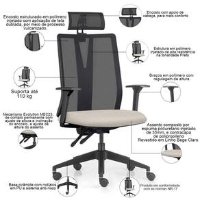 Equipada com um mecanismo Evolution, um sistema de contato permanente, essa cadeira giratória abraça as suas necessidades, permitindo ajustes precisos na altura do assento, do encosto e dos braços. Cada detalhe foi pensado para proporcionar um suporte ideal, respeitando o biotipo do usuário e promovendo uma postura saudável durante longas horas de trabalho. Já a base pirâmide, adornada com rodízios em PU e sistema anti-risco, desliza suavemente sobre qualquer superfície, garantindo movimentos ágeis e seguros. Por fim, o encosto com apoio de cabeça completa a experiência, permitindo que você se concentre no que realmente importa, enquanto sua mente flui livremente.