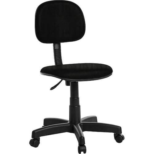 Cadeira de Escritório Giratória Secretária Ideal para ambientes como: Escritórios, Corporativo, Home Office, Consultórios, etc. Especificações: Revestimento: Cor do Revestimento: Preto. Tipo de Revestimento: Crepe. Malha: 100% Poliéster; Material: Crepe; Composição Química: Polímero pertencente ao grupo de resinas sintéticas; Detalhamento do Assento: Espuma Injetada de Poliuretano; Largura 425 mm X Espessura 50 mm X Profundidade 385 mm; Detalhamento do Encosto: Espuma Injetada de Poliuretano; Largura 365 mm X Espessura 40 mm X Altura 295 mm; Componentes da Base Giratória: Flange em aço Preta; Estrela em Aço com Capa Preta; Rodízios em Nylon; Pistão a gás Preto, permite regulagem da altura; Base possui raio externo de 285 mm, raio útil de 262,5 mm; Parafusos Philips para Montagem; Dimensões e Peso montado: Altura do assento referente ao piso, miníma 420 mm, máxima 530 mm; Peso aproximado: 8,8 kg; Peso suportado: 110 kg Uniformemente Distribuídos; Dimensões da Caixa: Largura 590 mm X Profundidade 580 mm X Altura 200 mm; Componentes Inclusos: 01 Assento Secretaria; 01 Encosto Secretaria; 01 Suporte de Encosto com Capa Preto; 01 Pistão com Capa Preta; 01 Estrela em Aço com Capa Preta; 05 Rodízios Nylon Preto; Parafusos para montagem ¼ Philips; Manual de Montagem. Montagem: A montagem deve ser realizada pelo cliente seguindo o manual de montagem. Garantia: 180 dias contra defeitos de fabricação, previstos em Lei; Obs: Pode haver variação de tonalidade referente ao lote do revestimento e a resolução de Computadores e Smartfones.