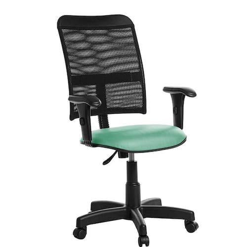 Cadeira escritório giratória tela com braço rv turquesa Ideal para ambientes como: escritórios, corporativo, home office, consultórios, etc. Especificações: Revestimento: Cor do revestimento: turquesa; Tipo de revestimento: viena; Malha: 67% poliéster e 33% algodão; Material: vinil e material sintético; Composição química: 13,8% de malha e 86,2% resina de vinila plastificada; Espessura aproximada: 0,09 cm +/-11% ; Detalhamento do assento: Espuma injetada de poliuretano; Largura 46 cm x espessura 5 cm x profundidade 42 cm; Detalhamento do encosto: Estrutura em aço preta revestida com tela mesh; Largura 45 cm x espessura 2 cm x altura 54 cm; Componentes da base giratória: Flange em aço preta; Pistão a gás preto, permite regulagem da altura; Estrela em aço com capa preta; Rodízios em nylon; Base possui raio externo de 28,5 cm, raio útil de 28 cm; Parafusos philips para montagem; Dimensões e peso montado: Altura do assento referente ao piso, mínima 42 cm, máxima 53 cm; Altura do topo do braço referente ao piso, mínima 59 cm, máxima 71 cm; Peso líquido aproximado: 11 kg; Peso bruto aproximado: 11,5 kg; Peso suportado: 110 kg uniformemente distribuídos; Dimensões da caixa: Largura 60 cm x profundidade 60 cm x altura 20 cm; Componentes inclusos: 01 assento executivo; 01 encosto em tela mesh; 01 suporte de encosto com capa preto; 01 flange em aço preta; 01 pistão com capa preta; 01 estrela em aço com capa preta; 05 rodízios em nylon preto; 02 braços reguláveis pretos; Parafusos para montagem philips; Manual de montagem. Montagem: A montagem deve ser realizada pelo cliente seguindo o manual de montagem. : 180 dias contra defeitos de fabricação, previstos em lei; Obs: Pode haver variação de tonalidade referente ao lote do revestimento conforme a resolução de computadores e smartfones. Marca: Não Informado