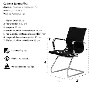 Cadeira Escritório Interlocutor Stripes Fixa Pu Nude Modelo: Cadeira Escritório Stripes Fixa Nude Assento: Estrutura Revestida em PU Base: Aço Cromado Profundidade: 60 cm Largura: 55 cm Altura Total: 89 cm Altura do Chão Até o Assento: 46 cm Altura do Chão Até o Braço: 68 cm Medida Interna do Assento Profundidade 47 cm Largura 46 cm Peso Máx. Recomendado: 120 kgs Peso unitário: 6,5 kgs