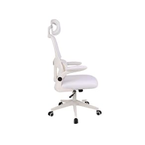 Possui superfície em malha, apoio de cabeça e braços ajustável, estrutura em polipropileno. Suporta até 100kg. Rodas em polipropileno classe 3, mecanismo borboleta.