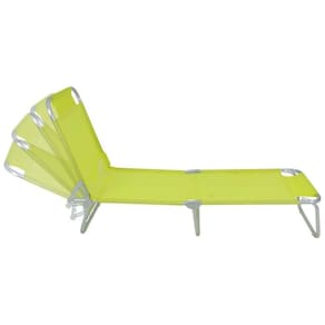 Feita com estrutura de alumínio resistente, essa espreguiçadeira é leve, fácil de transportar e pode ser dobrada, ocupando pouco espaço. Com sapatas antiderrapantes e alça para facilitar o transporte, essa espreguiçadeira é perfeita para relaxar em qualquer lugar. A tela 100% Textilene, com revestimento em PVC, proporciona durabilidade e conforto. O sistema de catraca ajustável permite escolher entre 4 posições de inclinação. Suporta até 100kg. Medidas: 1,65 m x 60 cm x 84 cm posição totalmente inclinada e 1,98 m x 60 cm x 42 cm posição reta . Cor: Amarelo. Marca: Não Informado