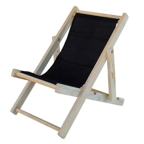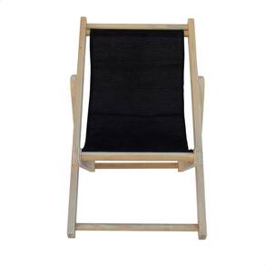 Espreguiçadeira infantil ideal para praia, piscina ou descanso em casa. Estrutura 100% madeira maciça Pinus, acabamento natural, dobrável e reclinável em 3 posições. Tecido hidro-repelente, resistente e removível para fácil limpeza. Design compacto com apoio de braço, suporta até 70 kg.