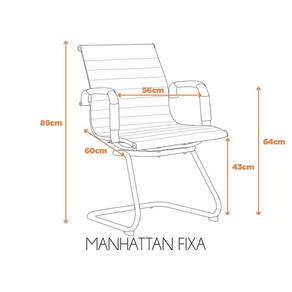 Com o estilo clássico de um assento de escritório, a cadeira Manhattan oferece praticidade para o seu usuário. A peça conta com a estrutura em aço cromado com revestimento em couro ecológico e sua base fixa. Tipo de Encosto: Fixo Escala de Brilho: Fosco Produto Montado: Sim Almofada do assento: Fixa Acabamento da Estrutura: Não se Aplica Altura do assento até o chão: 43.0000 Ambiente: Escritório Ambiente Principal: Escritório Braço com Ajuste de Altura: Não codigo_ean: 7899896302458 Complexidade da Montagem: Média: pode ser montado por mais de uma pessoa e/ou necessite de maior conhecimento para montagem Cor: Preto Cor: Preto Empilhável: Não Encosto Reclinável: Não Estrutura do Assento: Aço Estrutura do Encosto: Aço Cromado Giratória: Não Linha ou Coleção: Manhattan Manual de Montagem e Instalação: https://product-hub-prd.madeiramadeira.com.br/328510/documents/b67889b3-5991-42ae-8674-87fcbba6dff4ntagemCadeiraManhattanFixa.pdf Material da Base: Aço Necessita Montagem: Sim Peso: 14 kg Possui Apoio para Braços: Sim Possui Apoio Para os Pés: Não Possui LED: Não Possui Rodízio: Não Quantidade de Itens: 1 Recomendações de Uso, Manutenção e Limpeza: Concha / Par de Braços + Revestimento dos Braços / Flange (Mecanismo) / Pistão / Anel (Acabamento entre pistão e estrela) / Rodizio (Estrela + Rodinhas) / Kit de Parafusos + Chave de Parafusos Revestimento do Assento: Couro Ecológico Revestimento do Encosto: Couro Ecológico Sistema de Montagem: Concha / Par de Braços + Revestimento dos Braços / Flange (Mecanismo) / Pistão / Anel (Acabamento entre pistão e estrela) / Rodizio (Estrela + Rodinhas) / Kit de Parafusos + Chave de Parafusos Suporta Até (kg): 150 kg Tipo de Assento: Fixo