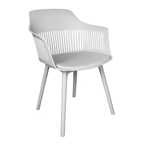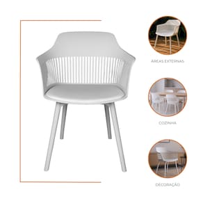 Estrutura em polipropileno (PP), material durável e leve, com assento estofado em poliuretano (PU), proporcionando excelente conforto.