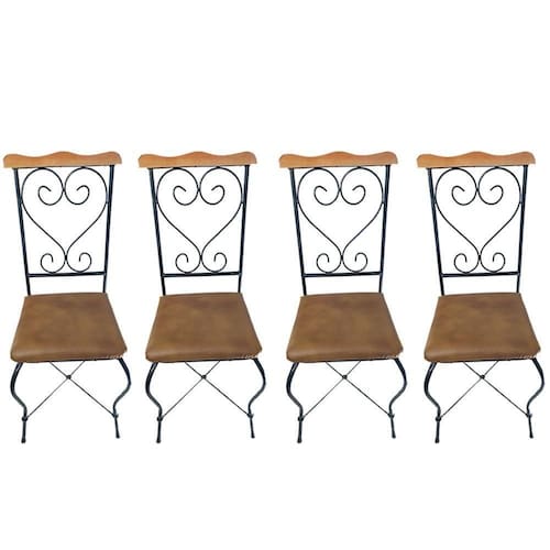 Procurando por cadeiras elegantes e confortáveis para sua cozinha? Então você precisa conhecer a Cadeira de Ferro Estofada Impermeável Artesanal.Totalmente feitas à mão por um artesão experiente, cada uma dessas cadeiras é um verdadeiro exemplo de qualidade e atenção aos detalhes.A estrutura das cadeiras é feita em ferro com pintura eletrostática que não enferruja, possui reforços estruturais que aumentam ainda mais a resistência das cadeiras, que são testadas até 150kg.O assento acolchoado é feito com material resistente e ótimo acabamento, sua espuma de boa qualidade não irá ceder.Feita para durar, todos estes detalhes garantem que as suas cadeiras sejam usadas por muitos anos sem perder sua beleza O projeto ergonômico com muito conforto no encosto e o assento acolchoado agrega um conforto extra, proporcionando uma experiência incrível para você e seus convidados durante as refeições.O estofado impermeável dessas cadeiras é ideal para quem busca praticidade e facilidade na limpeza, tornando-as uma excelente opção para quem tem crianças ou animais de estimaçãoE para proteger o seu piso, as cadeiras possuem pezinhos de plástico emborrachado que não deixam riscosO design das cadeiras é realmente bonito e sofisticado, com um coração feito em arabesco no encosto, com acabamento em madeira maciça.Além de outro detalhe incrível: com o assento é feito em couro ecológico na mesma tonalidade da madeira que harmoniza perfeitamente com a estrutura de ferro das cadeiras, criando um conjunto elegante e moderno.Esses detalhes de acabamento mostram o cuidado e a atenção que o artesão teve ao criar essas peças únicas, garantindo uma qualidade superior e durabilidade às cadeiras, agregando ainda mais valor à decoração da sua cozinha.Não perca mais tempo procurando por cadeiras de qualidade, Cadeira de Ferro Estofada Impermeável Artesanal é a escolha certa para quem quer qualidade, conforto, beleza e durabilidadeMedidas da cadeira:Largura total 40 cmComprimento 40 cmAltura do encosto 51 cmAltura do assento 47 cmAltura total 97 cmLargura do assento 37 cmComprimento do assento 37 cm