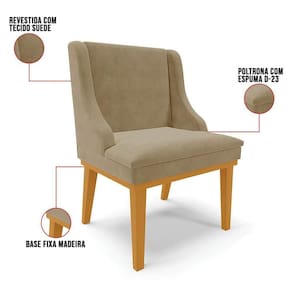 Os melhores momentos que passamos com a nossa família e amigos são ao redor da mesa durante as refeições, por isso, a escolha da cadeira é tão importante. Além de compor a decoração do ambiente, ela precisa ser confortável e resistente, assim como a Cadeira Estofada Lia que suporta até 120 kg, conta com estrutura ecologicamente correta em madeira de eucalipto proveniente de reflorestamento e base fixa em madeira, que agrega qualidade e durabilidade ao produto. Todo o conforto vem da espuma de densidade D-23 e do tecido do assento e do encosto. O revestimento desse móvel incrível é em Suede de alta qualidade que possui textura delicada, macio ao toque, resistente a umidade, de fácil limpeza e acabamento sofisticado.