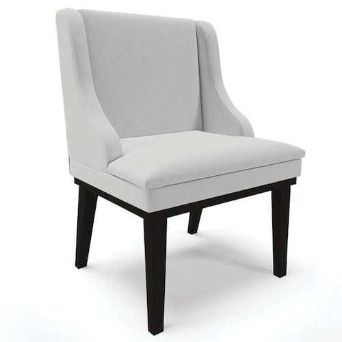 Unindo conforto e estilo, a Ibiza desenvolveu a Cadeira Estofada para Sala de Jantar Base Fixa de Madeira Preto Lia Linho Cinza, confira!