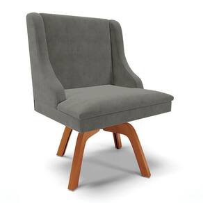 Conforto e elegância são as palavras que definem a Cadeira Estofada para Sala de Jantar Base Giratória de Madeira Lia Suede Grafite, da Ibiza, conheça os detalhes!