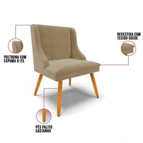 Desde a década de 60, o Pés Palito vem ganhando o coração das casas brasileiras, transmitindo leveza, sofisticação e conforto. Pensando nisso, a Cadeira Estofada Lia foi projetada para dar um toque elegante e clean na decoração desde a Sala de Jantar, Sala de Estar, Varanda até Área Gourmet, tornando o ambiente especial para reunir a família e os amigos garantindo momentos memoráveis! Além disso, a estrutura é produzida em madeira de eucalipto, ecologicamente correta, conferindo qualidade, segurança e resistência! A parte estofada é um show à parte, composta por espuma macia densidade D-23 e tecido Suede agradável ao toque, macio, aconchegante e altamente resistente.