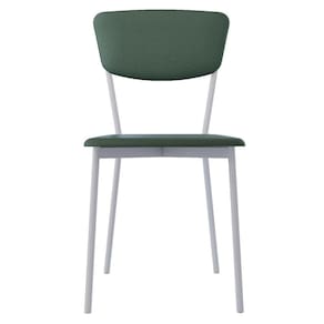 ProductInstructions: Produto para uso em ambiente interno, nao devendo ficar exposto ao sol, calor e umidade excessivos. | ProductHeight: 83 cm | ProductWidth: 43 cm | ProductWeight: 6,5 kg | Model: Village | ProductLength: 53 cm | Material: Estrutura em Aço e MDP, Revestimento em Couro sintético e espuma | ColorFamily: Verde | OriginCountry: Brasil | MaterialFamily: Aço, MDP, Couro sintético e espuma | SizeDescription: Altura: 83 cm x Largura: 43 cm x Profundidade: 53 cm | OriginState: PR | ColorSupplier: Verde Sálvia | Color: Verde | ProductWarranty: 90 dias após o recebimento do produto | SupplierSimpleName: Cadeira Estofada Para Sala de Jantar Village Branco C01 Courino Verde Sálvia - Lyam Decor | ProductContents: 01 Cadeira | ColorSimple: Verde | Cor: Verde