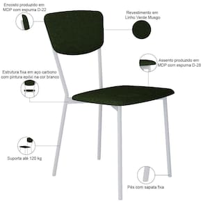 ProductHeight: 83 cm | SupplierSimpleName: Cadeira Estofada Para Sala de Jantar Village Branco C01 Linho Verde Musgo - Lyam Decor | OriginCountry: Brasil | Model: Village | ProductLength: 53 cm | ColorSupplier: Verde Musgo | MaterialFamily: Aço, MDP, Linho e espuma | OriginState: PR | ColorSimple: Verde | ProductContents: 01 Cadeira | ProductWidth: 43 cm | ProductInstructions: Produto para uso em ambiente interno, nao devendo ficar exposto ao sol, calor e umidade excessivos. | ProductWarranty: 90 dias após o recebimento do produto | Color: Verde | Material: Estrutura em Aço e MDP, Revestimento em Linho e espuma | ColorFamily: Verde | SizeDescription: Altura: 83 cm x Largura: 43 cm x Profundidade: 53 cm | ProductWeight: 6,5 kg | Cor: Verde
